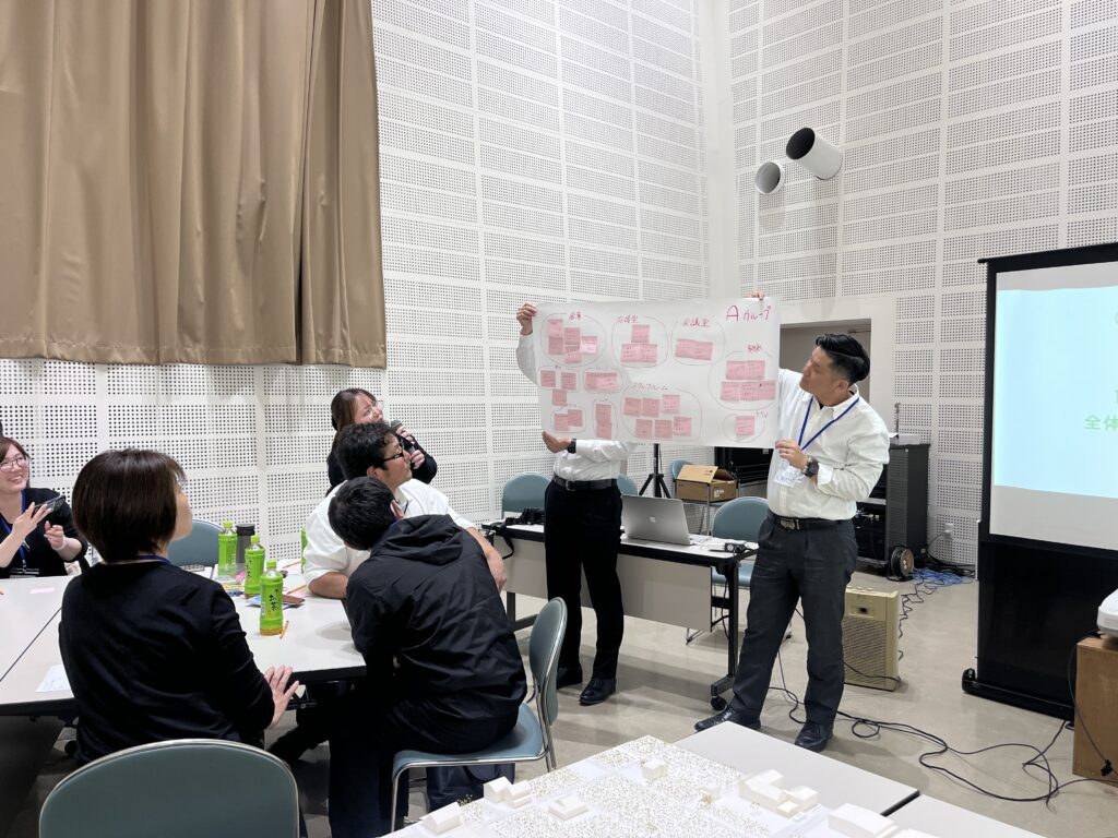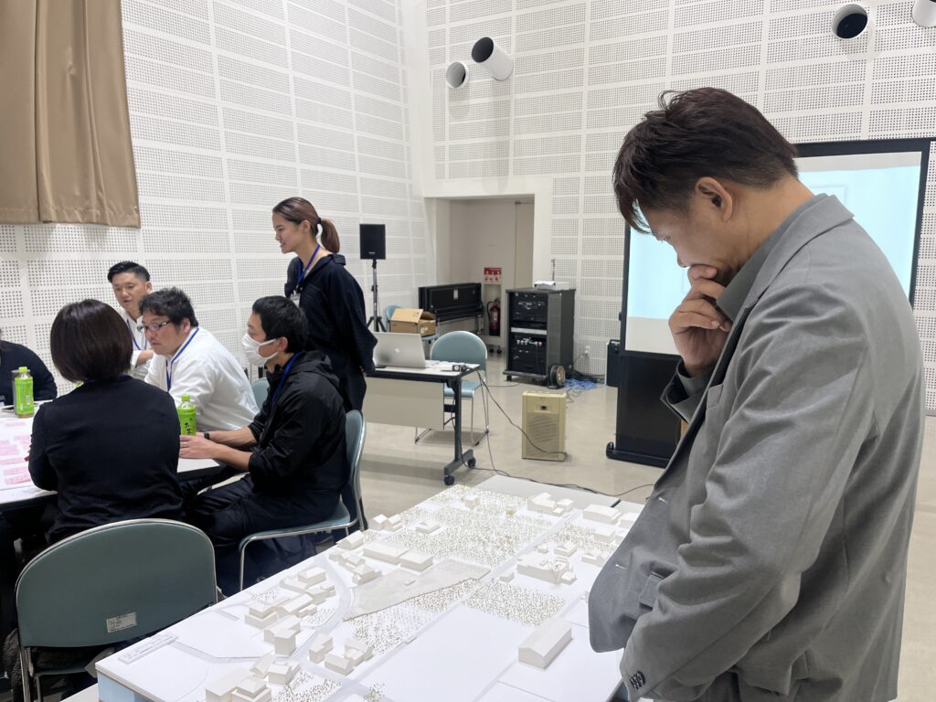 本社周辺の模型を準備いただいていて、模型を囲みながらのディスカッションはワクワク感あふれる時間となりました。